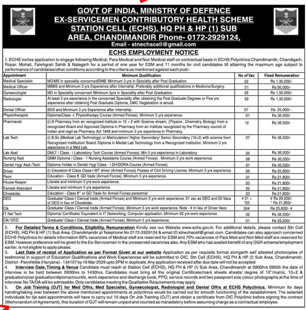 Chandimandir ECHS Vacancy 2026 NoticeĀ  Official Notice