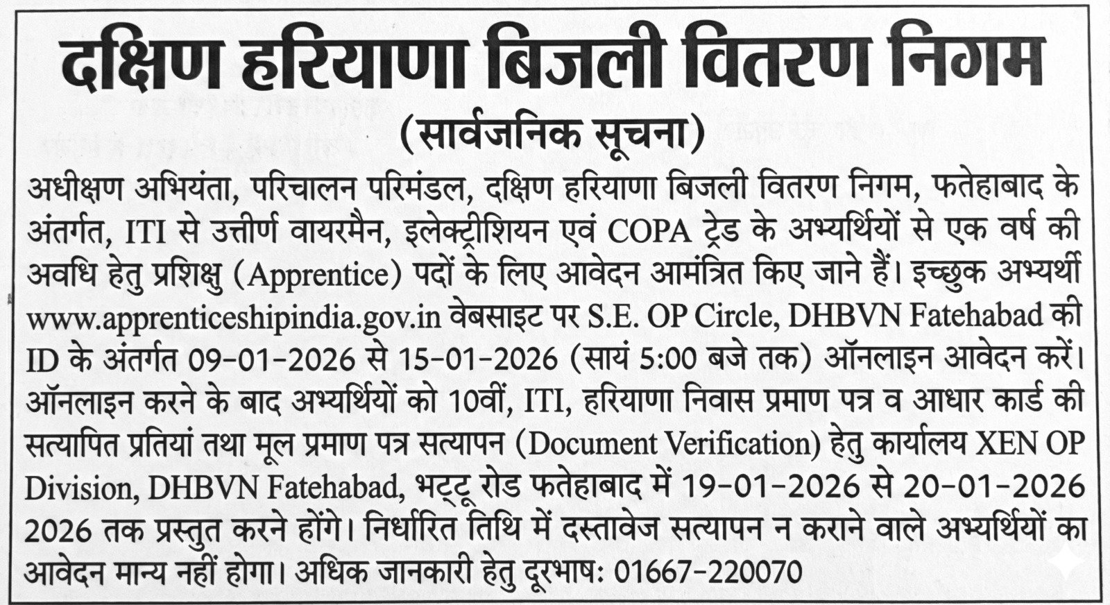 | Haryana Bijli Board Vacancy 2026 Notice | Official Notice |