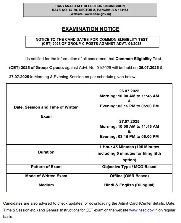 | HSSC CET Registration 2025 Notice | Official Notification |