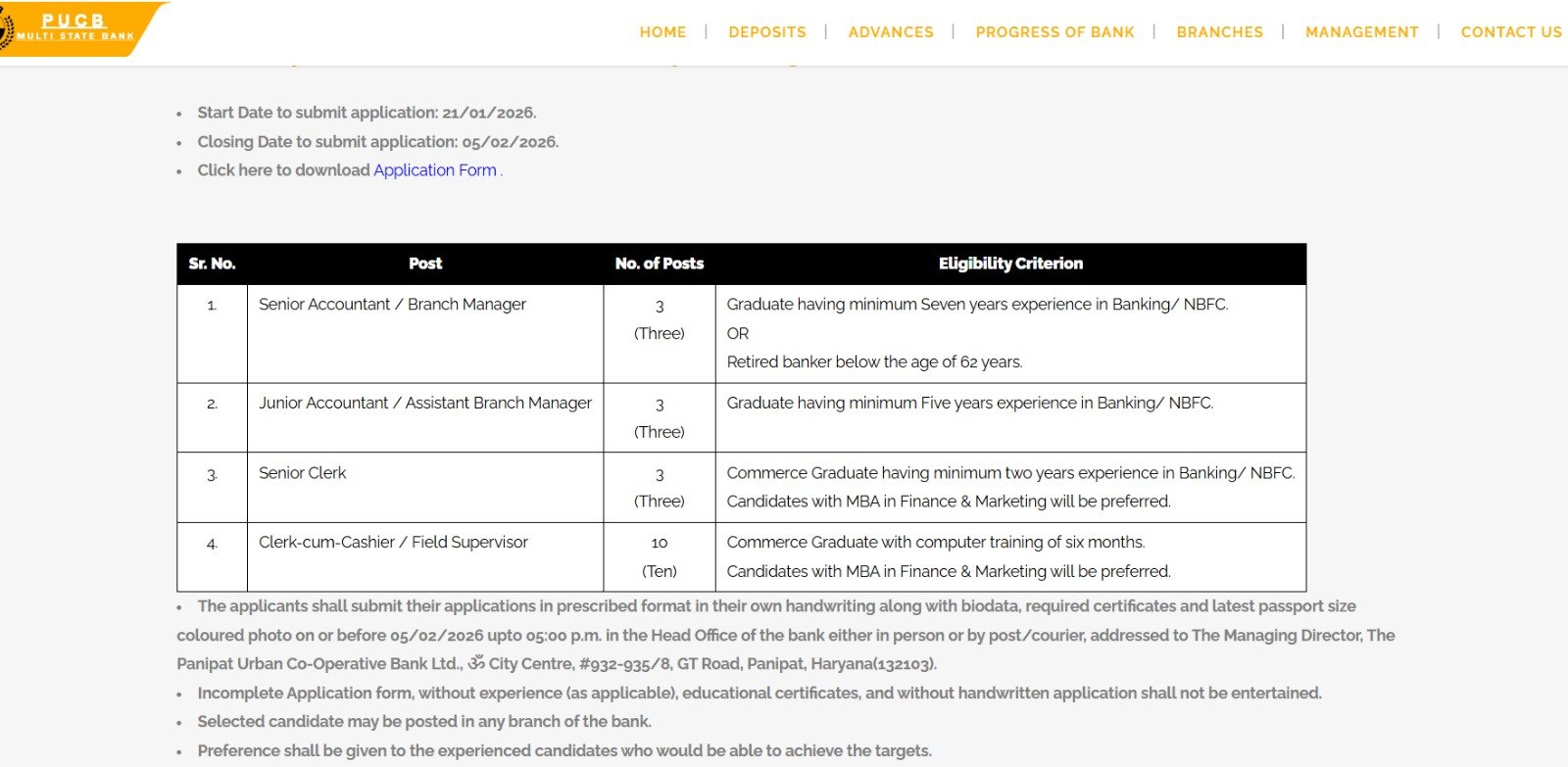Please Follow the given steps to apply for the Panipat Urban Cooperative Bank New Vacancy 2025